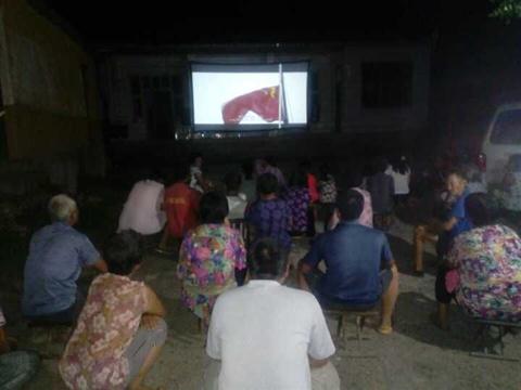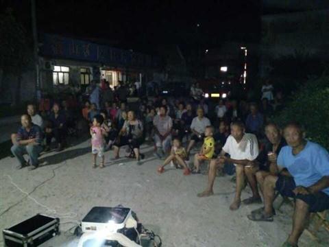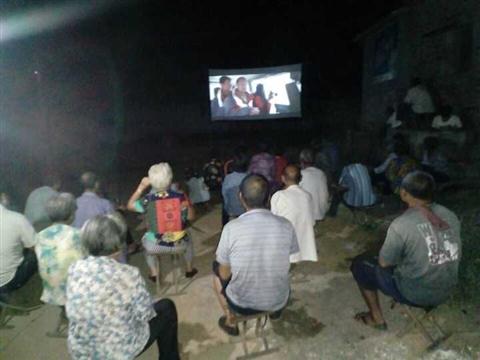 该村的固定银幕架位于该村文化广场。
