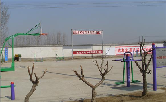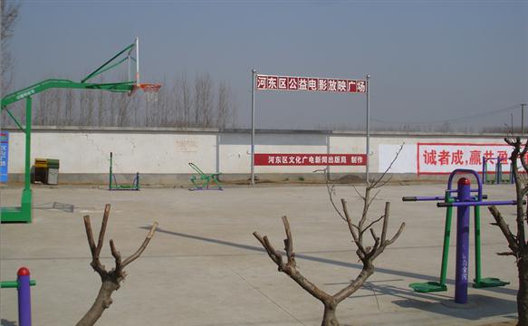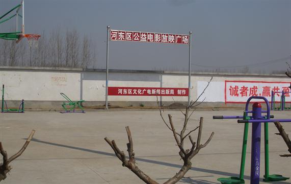 该村的固定银幕架位于该村广场的西北方位;