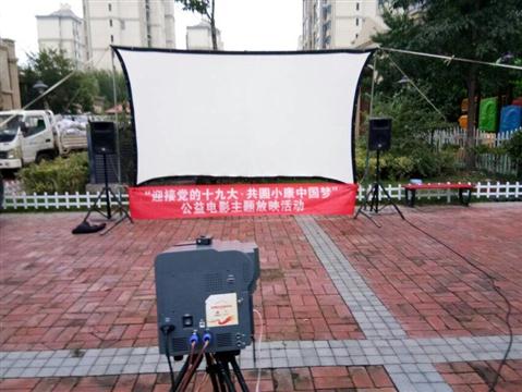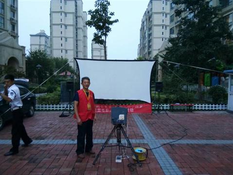 该队使用海威数字电影流动一体机,配有简易银幕支架