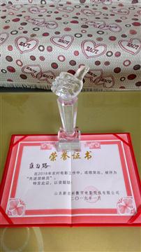 放映员康为路.性别男,年龄53岁,从事放映工作36年。 放映设备北京海威;飞达功放组装一体机 。 放映运输工具上汽五菱之光面包车;配备车载喇叭等宣传工具 。 隶属于临清市公益电影第八放映队;主要负责临清市戴湾镇24个村庄电影放映工作;14年,15年连续获得山东省院线公司先进个人荣誉称号;16年17年18年连续5年被评为山东新农村数字院线公司先进放映员。和先进放映队 , 1