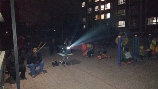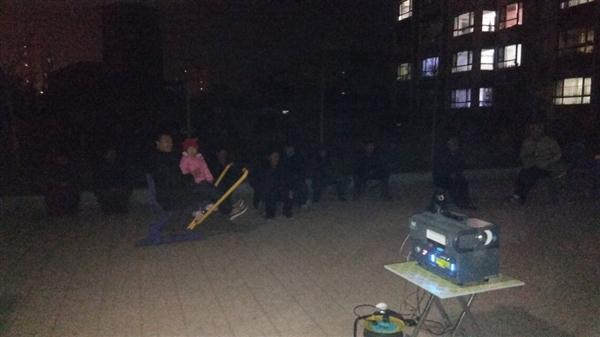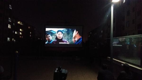 我队使用的是海威TW-T16-A-2.0型号一体机:拥有简易银幕架,保证银幕张挂质量;拥有宣传用扩音器,让每位观众知道放电影的信息。