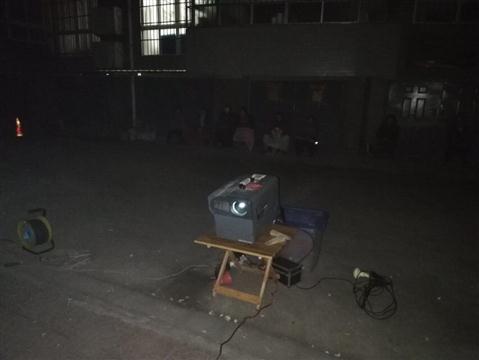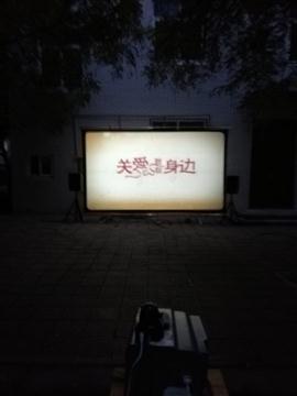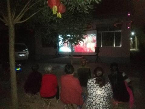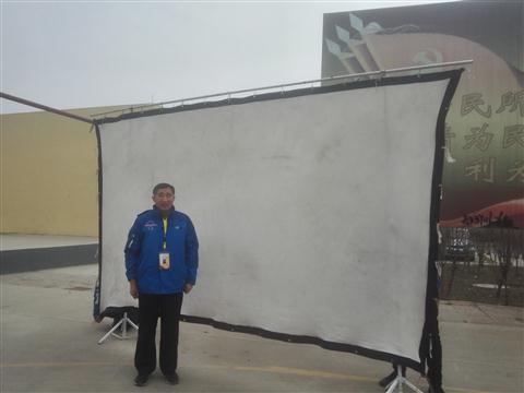 我队使用的是海威TW-T16-A-2.0型号一体机:拥有简易银幕架,保证银幕张挂质量;拥有宣传用扩音器,让每位观众知道放电影的信息。