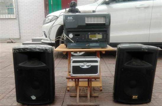 我队使用的是海威TW-T16-A-2.0型号一体机:拥有简易银幕架,保证银幕张挂质量;拥有宣传用扩音器,让每位观众知道放电影的信息。