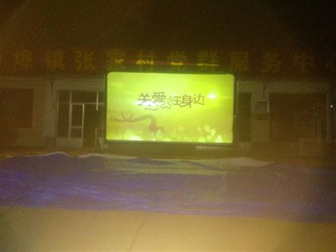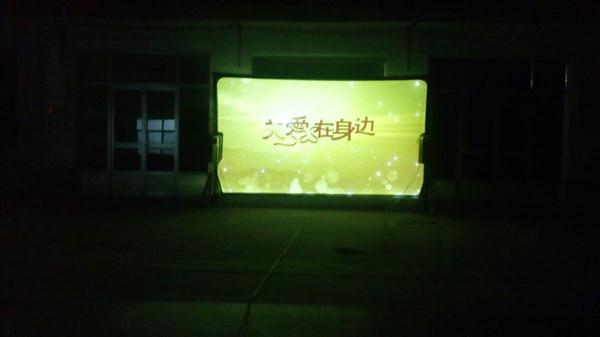我队使用的是海威TW-T16-A-2.0型号一体机:拥有简易银幕架,保证银幕张挂质量;拥有宣传用扩音器,让每位观众知道放电影的信息。