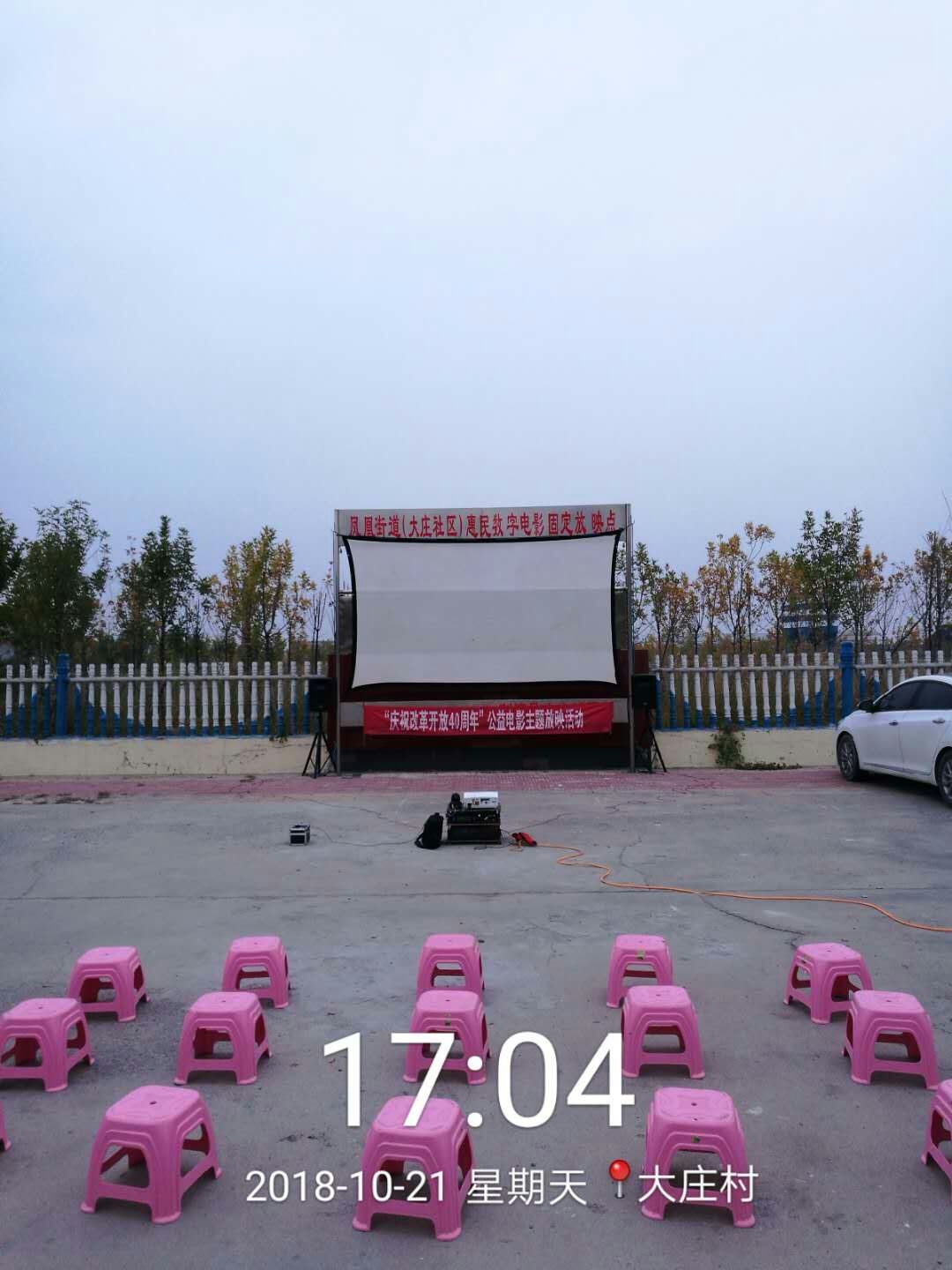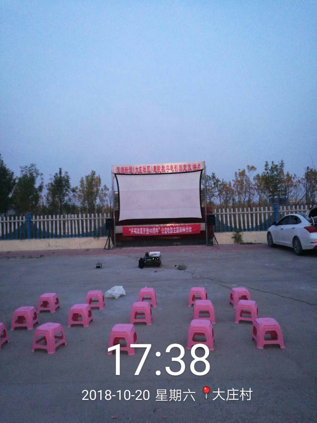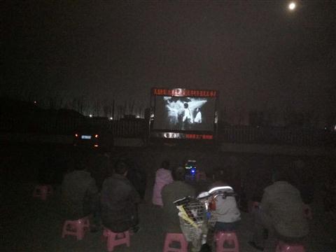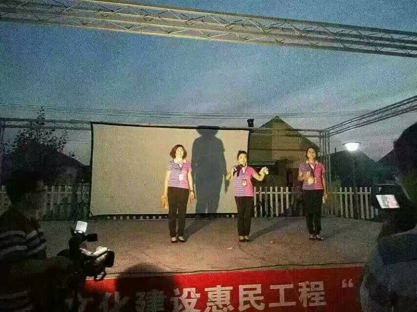 我队使用的是海威53型分体机,拥有固定银幕架保证银幕张挂质量;拥有宣传用扩音器,让每位观众知道放映的信息。