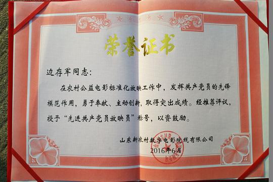 河东区放映6队,2016年度被山东新农村数字电影院线公司评为优秀党员放映员,2015年被评为河东区优秀放映员。放映员边存军,男,48岁,临沂市河东区放映员,从事放映工作5年。凭着对农村电影放映工作的热爱以及对数字电影放映技术的钻研,他以优良的专业素养,每年度都认真的完成农村电影放映任务,得到了各级领导的信任和赞扬。该队放映设备为时代今典V12组装一体机,配备简易银幕架、芜湖铝合金银幕架,配备宣传用扩音器、上课宝等宣传工具,运输工具为金杯面包车,主要负责河东区汤头街道办事处、太平街道办事处、凤凰岭街道办事处、八湖镇、郑旺镇、汤河镇等161个行政村(备注:公司各放映队在各乡镇、街道统一组织放映,各放映队根据计划确定每天的放映村庄)以及河东区各广场的放映工作。