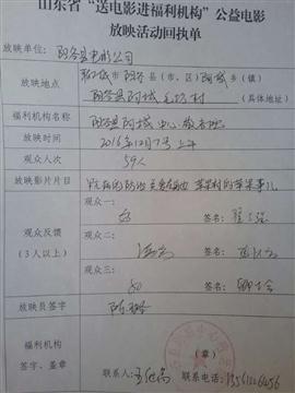 放映员姓名:陈璐 性别:男,从事放映工作10年,先用放映设备是海威HW-T16-C-2.0等一体机,放映运输工具是长安面包车,配备高音喇叭等宣传工具,主要是负责阳谷县福利机构的放映。