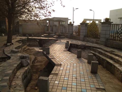 广场的标志性建筑(或人文景观)是假山、凉亭。