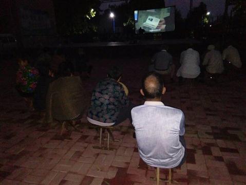 我队使用的是海威HW-T16-2.0型号一体机:拥有简易银幕架,保证银幕张挂质量;拥有宣传用扩音器,让每位观众知道放电影的信息。