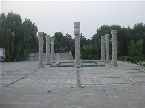 九根盘龙石柱竖立在汇泉广场的中心。