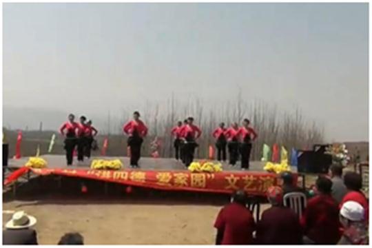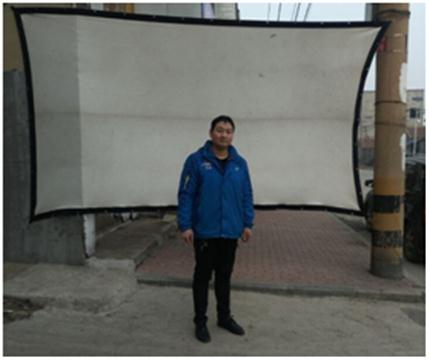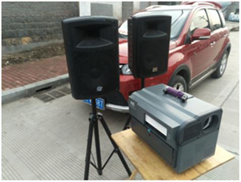 广场(社区)银幕架位于村中心路中段的 坐北朝南 方向。