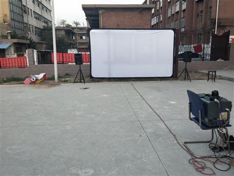 其材质为铁,长4 米,宽3米 ,由 铁架和 影幕构成。