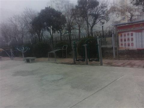 广场标志性建筑是健身器材,该标志性建筑物位于广场的南向。
