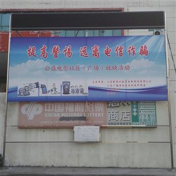 固定银幕为不锈钢管材5.5米宽,高5米。有可远控的LED屏。
