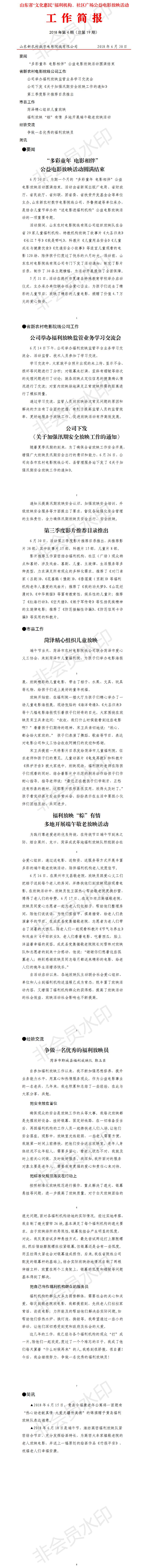 山东省“文化惠民”福利机构、社区广场公益电影放映活动 工 作 简 报 2018年第4期(总第19期)