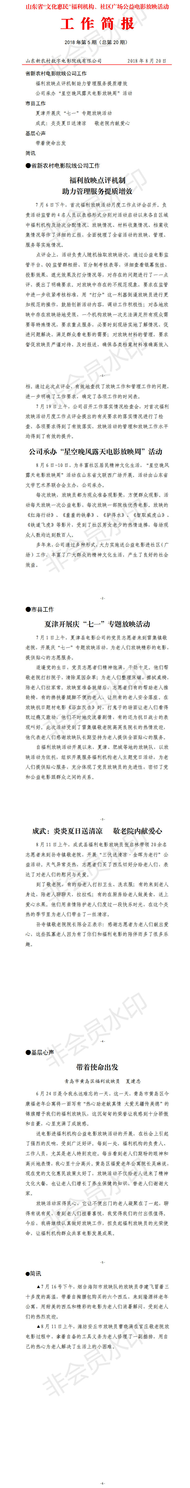 山东省“文化惠民”福利机构、社区广场公益电影放映活动 工 作 简 报 2018年第5期(总第20期)