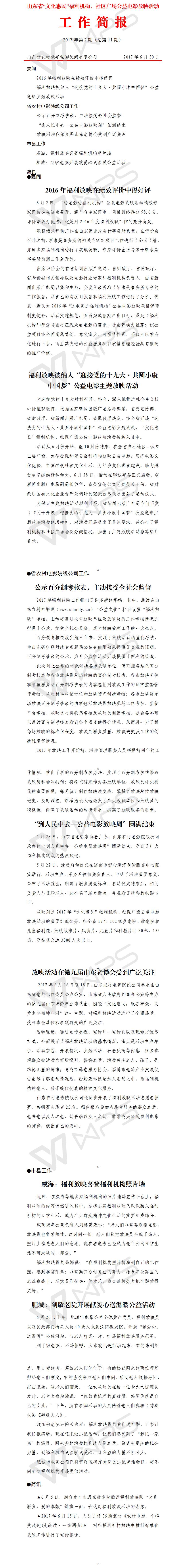 山东省“文化惠民”福利机构、社区广场公益电影放映活动工作简报2017年第2期(总第11期)