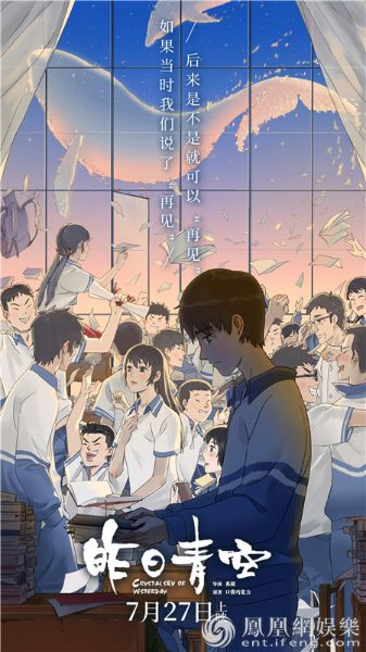 动画电影《昨日青空》将于今年7月27日上映。影片由彩条屋影业、光线影业、咕咚动漫工作室、好传动画联合出品,期望在暑期档为观众呈现“真正属于我们的国产青春”。