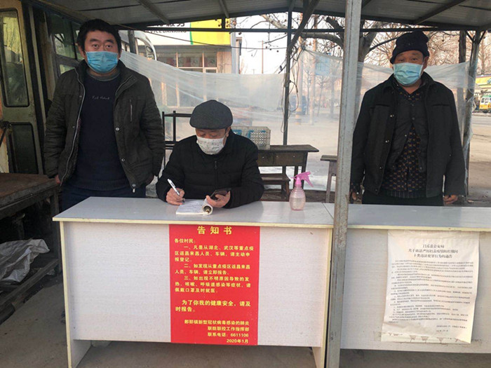 县电影公司经理孙长军带头与包靠小区对接,及时了解包靠小区情况,对出入的人员进行登记、消毒、测量体温。