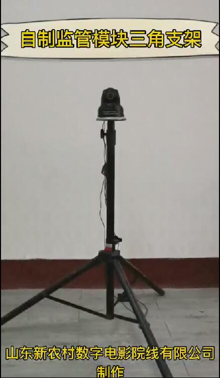 近日,聊城市东昌府区电影公司的农村公益电影工作者受相机三角支架的启发,别出心裁,借鉴三角支架设计,利用音响支架,自制了监管模块三角架。