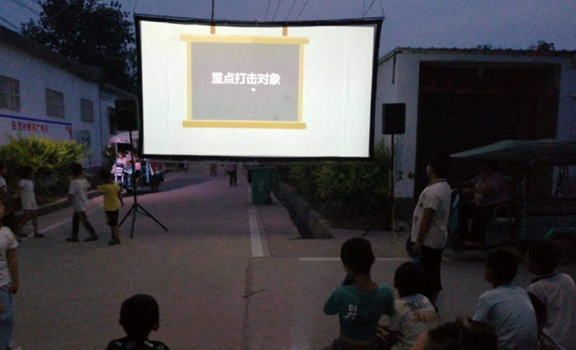 6月底,随着冠县电影公司恢复农村公益电影放映,受疫情影响,盼望再能看到公益电影的观众们纷纷走出家门,赶往放映现场。路上,村民纷纷收到放映员发放的“扫黑除恶”宣传单。电影开演前,大银幕上还播放着扫黑除恶专项斗争宣传视频。农村公益电影放映工作形式灵活、覆盖面大、受众面广,是一个很好的宣传平台。因此,冠县借助公益电影结合“扫黑除恶”宣传工作也受到冠县文旅局的重视。