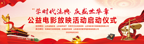 9月28日晚上,由山东省电影局、山东省司法厅、东营市司法局、东营市文化和旅游局、山东电影发行放映集团有限公司主办,山东新农村数字电影院线有限公司、利津县司法局、利津县文化和旅游局承办的“学时代法典 庆盛世华章”公益电影放映活动启动仪式在利津县盐窝镇十南村举行。省电影局、省司法厅、东营市委宣传部、东营市文化和旅游局等相关单位负责同志参加启动仪式。