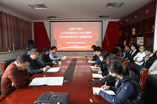 3月2日,2021年全国电影工作会议在北京召开。会议回顾了2020年电影工作,研究分析了电影工作形势,对2021年工作进行了部署。会议召开之后,山东公益电影人迅速行动,在全省掀起了学习热潮。3月5日,山东新农村数字电影院线公司召开专题会议,学习全国电影工作会议精神,谋划2021年工作。