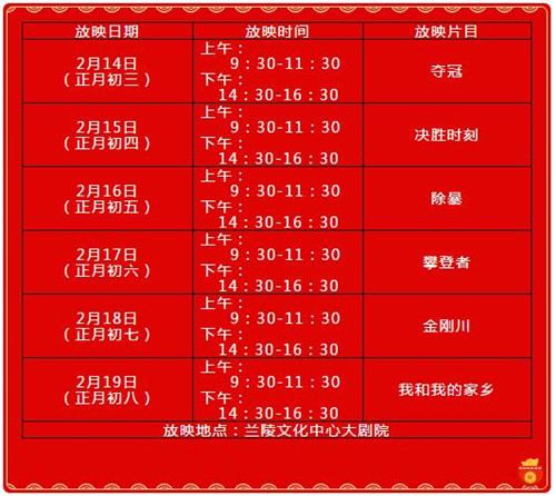 为丰富广大人民群众春节文化生活,营造喜庆、欢乐、祥和的节日氛围,兰陵县委宣传部、县文化和旅游局在做好疫情常态化防控的前提下,联合举办“贺新春 看大片 过个文化年”主题放映活动。倡导群众放下手机、推掉聚会,带上一家老小,到大剧院免费观看精彩的公益电影,让这个新年充满浓浓的“文化味儿”。