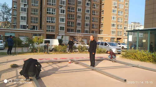安装社区广场固定银幕架