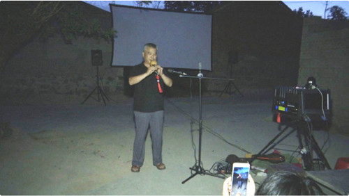 仲夏之夜,安丘西南部偏远的柘山镇朱家庄村,来了一支公益电影放映队。研究场地、架幕布、检查设备、调试灯光……一下车,队员们就马上忙碌起来。听说村里来了放映队,村民们拿着板凳,从四面八方聚集到放映地点,兴致勃勃地围坐在一起观看电影,沉寂的乡村变得热闹起来。放映前,放映员还给大伙儿露了一手,为村民表演葫芦丝、口琴、山东快书等节目,吸引了更多村民前来观影。