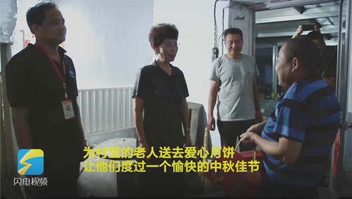 “过节了,来看看您,给您送点月饼,吃饭了咱去看电影,今晚上电影非常好看。”安丘市电影公司的工作人员先后来到兴安街道沈十里村、十里铺和管家埠等近20个村,把一份份“爱心月饼”送到老人手上。