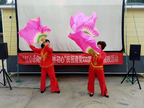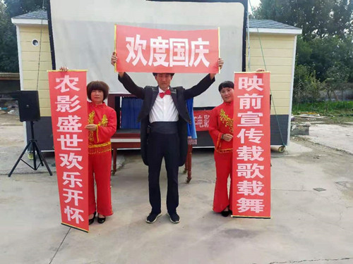 同样在国庆这天,广饶县大王镇的电影放映员李淑学,在为观众送上精彩电影之前,为大家表演自己练习了多次的魔术。另外,李淑学在来大王镇放映前,还联系了村里跳扇子舞的老姊妹,希望她们能够为大家表演扇子舞。这对老姊妹表示,能在国庆这天上台表演,为国庆献礼,非常高兴。