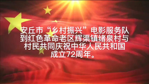 10月2日,山东潍坊安丘市“乡村振兴”电影服务队到安丘红色革命老区辉渠镇绪泉村与村民共同庆祝中华人民共和国成立72周年。放映员带来了瓜子、水果等,与村民一起观电影庆国庆。