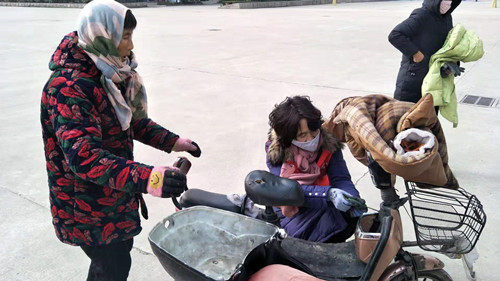 事情还得从2020年11月23日说起。当天下午,兰陵县电影公司基层放映员付媛媛、冯学学、石洪新按照放映计划,到向城镇黎丘村进行新农村公益电影放映。放映之前,他们三人照例徒步入户宣传,发放十九届五中全会精神宣传彩页。入户宣传结束后,走到村里广场碾台边时,付媛媛看到一老人正在用石碾压玉米和黄豆,由于年纪较大,老人自己滚动碾台非常吃力。看到这一幕,付媛媛三人放弃映前休息时间,主动帮助老人将农作物压完,并到村里超市为老人购买了水果和袜子。当老人用瓜子向三人表示感谢时,他们婉言拒绝,随即投入到放映工作中。