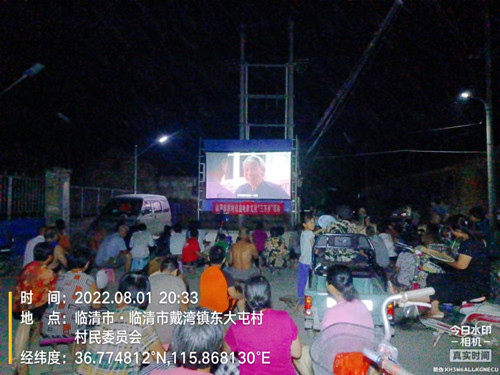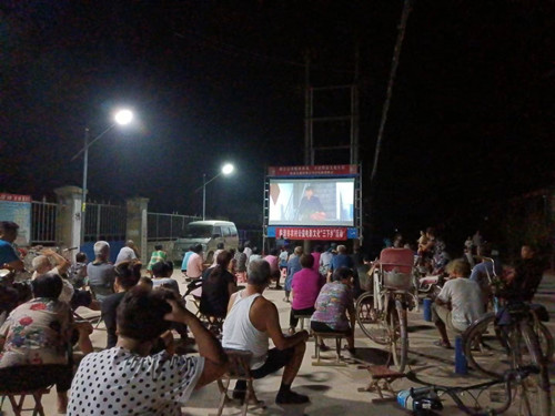 为推动联合村文化振兴走深走实,聊城市第二人民医院派驻水城屯联合村第一书记张建国积极联系山东新农村数字电影院线有限公司和临清市文化旅游局,为所属11个网格村,放映了《乡医老牛》《 好女婿孝媳妇》《我能做的事儿》《枣乡喜事》《袁隆平》《地雷站》《高家台》《致富路上的好书记》等优秀题材的故事片。把传统经典影片送到老百姓家门口,让乡村夜生活变得更加丰富多彩,受到了村民的一致好评和欢迎,为创建文明村居营造了良好氛围。