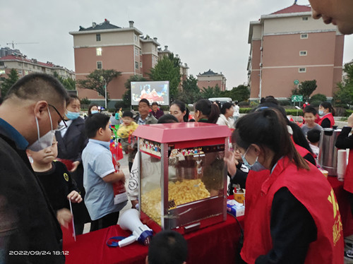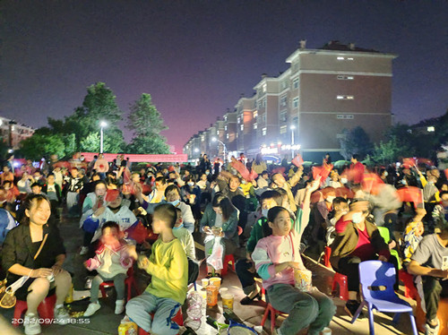 工作人员还为前来观影的观众准备了香甜可口的爆米花、果汁饮品、节日小国旗等精美礼品。放映前,放映员播放歌曲《我和我的祖国》,在场的观众小到学龄前儿童,上到古稀老人都挥舞着手中的旗帜齐声合唱,现场氛围浓厚。有的小朋友在家长的陪同下前来观看,把五星红旗贴在脸颊上,以活泼的方式表达着他们对祖国的爱。一部部经典优秀的影片和映前现场氛围的烘托,让活动受到广大群众喜爱,每处放映现场观众多达几百人。
