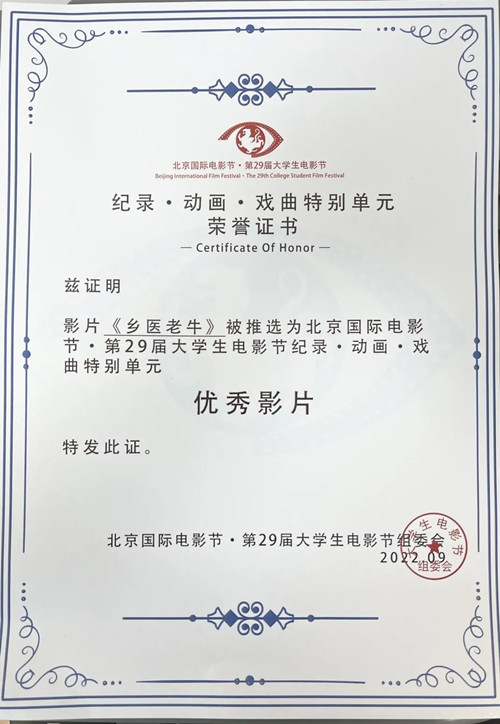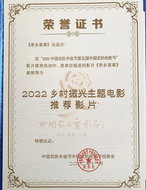 近期,山东新农村数字电影院线有限公司出品影片屡获殊荣。9月份,在国家新闻出版广电总局、北京师范大学、电影频道节目中心等联合主办的北京国际电影节•第29届大学生电影节上,《乡医老牛》荣获戏曲纪录单元“优秀影片”奖。11月初,在中国电影家协会、浙江省文学艺术界联合会、绍兴市人民政府主办的第四、五届中国戏曲电影展上,《枣乡喜事》荣获“优秀影片”奖;在农业农村部办公厅、国家乡村振兴局政策法规司、中国电影家协会等主办的第五届中国农民电影节上,《枣乡喜事》荣获“2022乡村振兴主题电影推荐影片”荣誉。