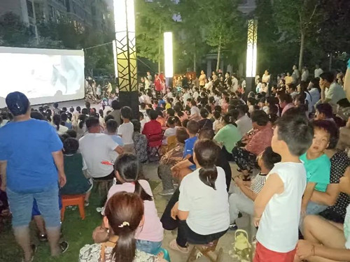 启动仪式于7月19日在沂城街道沂河明珠社区广场进行。当天,很多居民早早到达最佳观影位置,电影在雄壮的红色歌曲及民生公益宣传片中拉开序幕。当天放映了安全科普影片《儿童安全小剧场——防电篇》,电影开始前,放映员带领社区小朋友学习关于用电、防火的相关知识。稍后,随着故事片《战狼2》精彩的故事情节一次次激发群众的热情,周围不时传来社区群众的感慨。老人们深有感触的说“大家聚在一起看露天电影,感觉像回到了小时候,真是满满的回忆。”年轻的爸爸妈妈们表示“露天电影声音画面质量很高,在家门口就能看这些精彩的大片,还能让孩子们感受战争的残酷,增强身为中国人的自豪感,真是太幸福啦。”