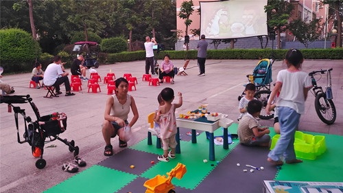 并且围绕活动主旨,在映前组织开展“好绘本·齐分享”、“亲子游戏齐参与”等丰富多彩的现场活动和趣味游戏。放映员在现场布置爬行垫和积木桌,为孩子们提供益智玩具等,这也引来了更多的观众,成为家长们“带娃”的新去处。家长们也纷纷表示,“看个电影还能增加一次高质量“带娃”的机会,大人孩子都很高兴,非常棒!”