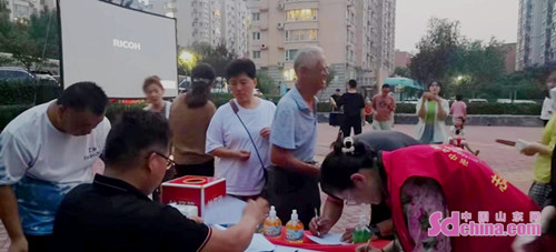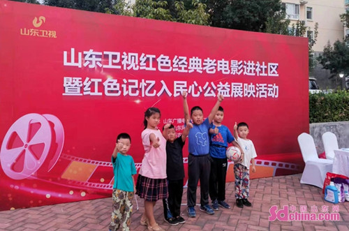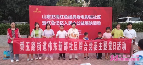 中国山东网-感知山东9月4日讯 为迎接国庆的到来,进一步夯实社区青少年、儿童的红色基因与爱国情怀,9月3日晚七点,山东广播电视台电视卫星频道、济南市舜玉路街道伟东新都社区综合党委共同主办、中国山东网、山东广播电视报社承办的红色电影展映活动在伟东新都北二区中心广场举行,受到社区青少年、广大党员和群众们的热烈欢迎。本次活动得到山东新农村数字电影院线有限公司派出的公益放映队的大力支持。