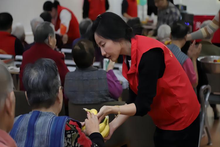 公寓的护工刘翠萍说, 她照顾的赵奶奶腿脚不太方便,但听到演播厅里的歌声,就赶快让她把自己推到厅里,看完了节目看电影,电影完了还跟着影片里的段子哼唱,开心了很久呢。