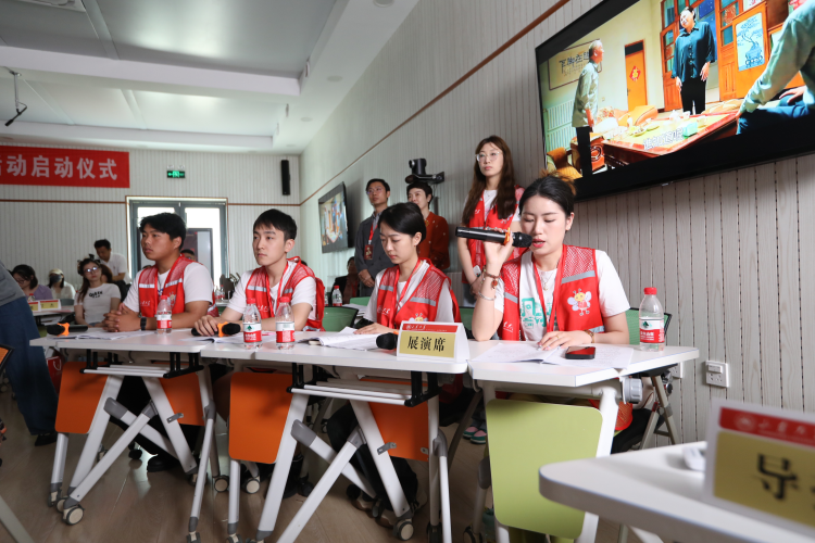 随后,“聆听光影”创演团队进行现场案例展演,“聆听光影”项目的编剧、导演、山东大学影视文化艺术传播研究中心执行主任、山东大学新闻传播学院副教授于晓风,山东大学新闻传播学院团委书记、“聆听光影”项目副导演杨璐进行了电影《沂蒙红嫂俺的娘》的片段展演。山东大学新闻传播学院与国际教育学院的王瑶、周心怡、刘明睿、张潇洋、鲍恩泽同学现场演出了电影《乡医老牛》的精彩片段。《沂蒙红嫂俺的娘》以沂蒙母亲王换于为人物原型,讲述了主人公舍小家为大家,悉心哺育革命英雄后代的感人故事;山东文化两创样本吕剧“四德工程”之一《乡医老牛》则以“仁德”为主题,讲述乡村医生扎根农村三十年无私奉献的故事,展现共产党员的初心与本色。二者作为示范展映样本,借助有声语言的创作表达和生动解说,实现了用耳朵“看”电影的精彩效果。