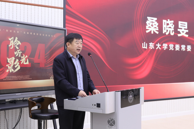 山东大学党委常委桑晓旻为活动致辞。他表示,“聆听光影”无障碍观影活动旨在通过将视觉语言转化为视听语言,让视障人群和其他需要关爱的群体通过听觉感受电影魅力。该活动是山东大学教学实践与社会服务相结合的有效探索,也是落实服务山东战略的体现。未来,山东大学将积极引导社会力量参与弱势群体帮扶,为面向全省乃至全国开展文化两创教育提供创新型体验的模板和范例。