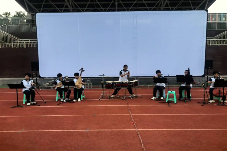 在放映开始之前,学校精心组织,安排了民族管弦乐合奏和阿卡贝拉无伴奏合唱,赢得了新生们的热烈掌声。