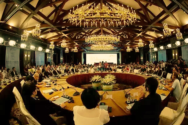 10月21日,第一届中国电影投资高峰论坛在海口观澜湖举行。导演冯小刚、陈国富、何平、文隽、孙周、李杨、金成洙,编剧束焕、芦苇、汪海林、董润年,电影公司大佬王中军、王中磊、江志强、王长田等出席活动。