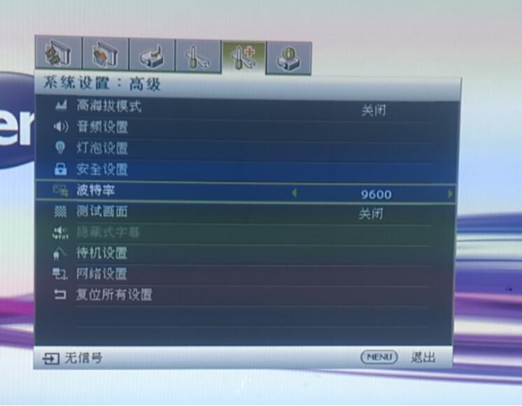 五、如果数值为9600,则可使投影机与服务器同时开启;反之,如果数值不为9600,投影机则不能与服务器共同开启。