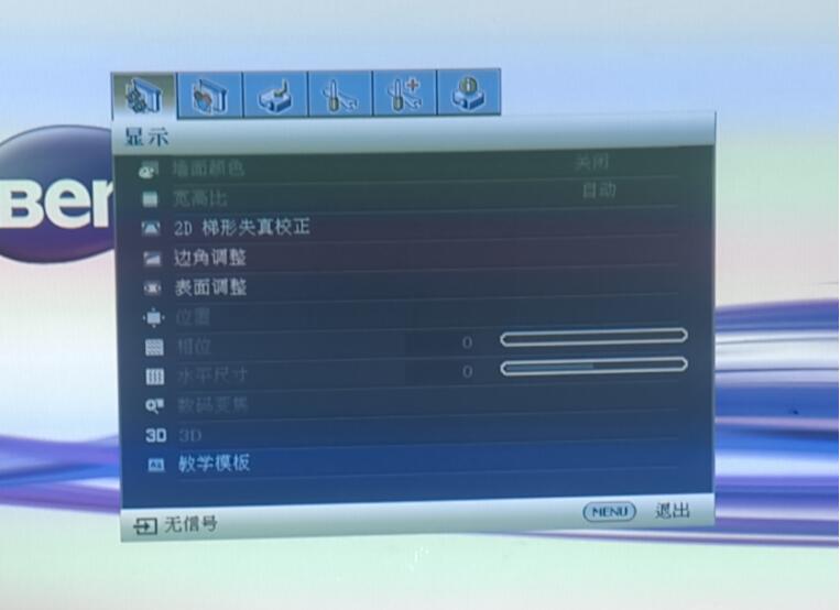一、点击投影机面板左上角的MENU(菜单)键,银幕投影会出现菜单栏;