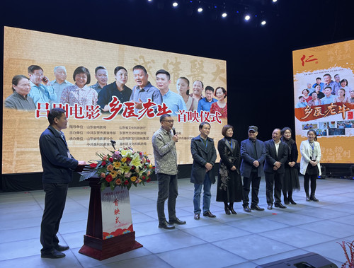 研讨会结束后,隆重举办了吕剧电影《乡医老牛》的首映仪式。《乡医老牛》是“四德工程”吕剧电影的收官之作,通过一名乡村医生,保持共产党员本色经受市场经济浪潮冲击,坚守几十年为群众服务的故事,展现农村生活百态,彰显“仁德”主题。影片首映完成后,正式开始面向全国发行放映。