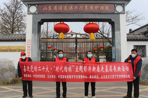 1月27日,由中宣部宣教局指导、中宣部电影数字节目管理中心主办、山东新农村数字电影院线有限公司承办的喜迎党的二十大·“时代楷模”主题影片新春走基层展映活动走进临沂市河东区汤头街道敬老院,为老人们送去精彩的电影节目、慰问礼品以及节日的祝福。