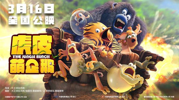 由法国图卢兹TAT动画公司出品,中国电影集团公司进口,中国电影股份有限公司发行的法国功夫无厘头喜剧动画《虎皮萌企鹅》正式公布终极海报和预告片,法国人气动画IP以3D电影形式被搬上大银幕,势必将在这个春天迎来“丛林大狂欢”。
